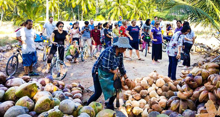 - 在椰子园𥚃骑自行车和认识到泰国人如何采用水果入菜的有关知识。